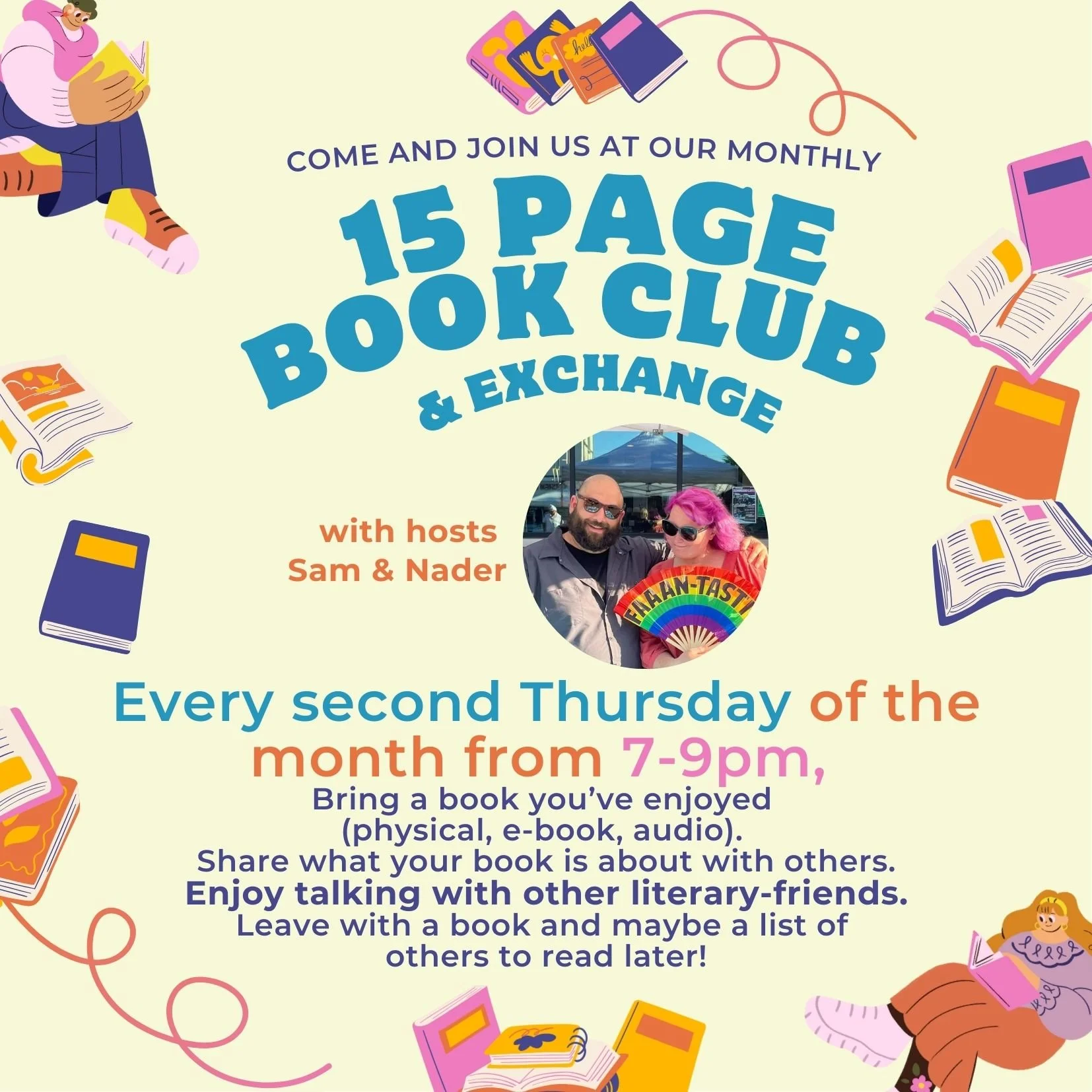 Join Beer Bazaar’s very own 15-Page Book Club, every second Thursday of the month from 7 pm - 9 pm. All genres welcome, come chat with fellow readers about your current literary adventures. After a book is shared, reflect on if the first 15 pages are indicative of the rest of the book. Also, feel free to bring a book you’ve enjoyed and are willing to add to the 15-Page Book Club’s Community Library at the store!