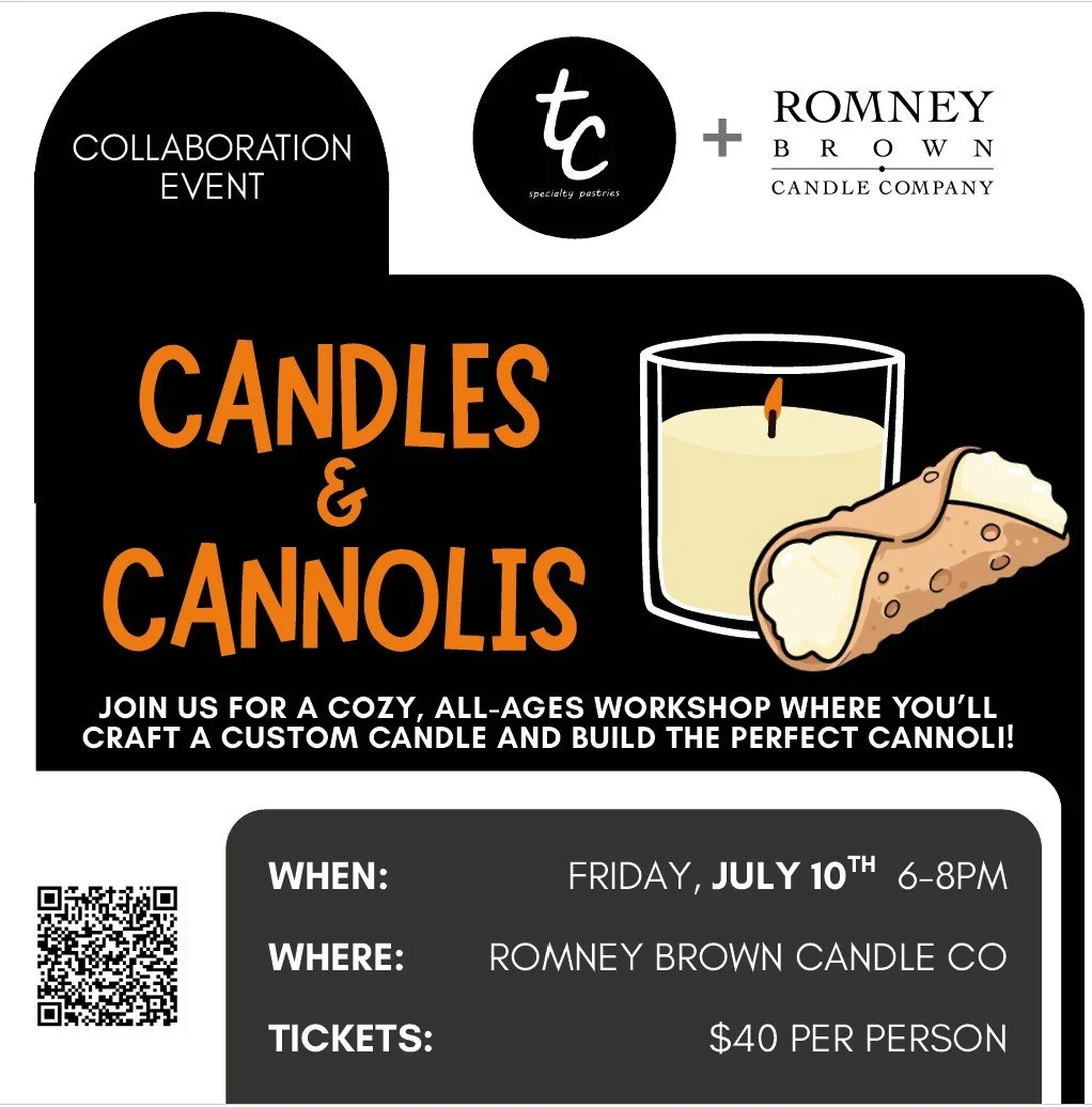 Candles and cannolis come together for a cozy, hands-on workshop at Romney Brown Candle Company in downtown Grayslake. Guests will create a custom candle using their Wall of Scents, blending fragrances to design something completely their own.