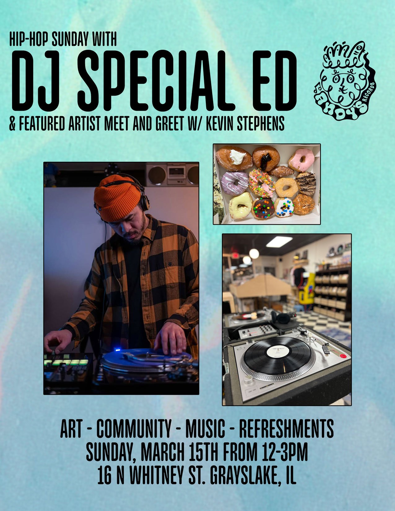 Join Andy’s Records for Hip-Hop Sunday where you can enjoy some coffee, beats and vibes with DJ Special Ed. PLUS, come check out their newest featured artist Kevin Stephens! Meet the artist, check out his work and enjoy a super chill Sunday!