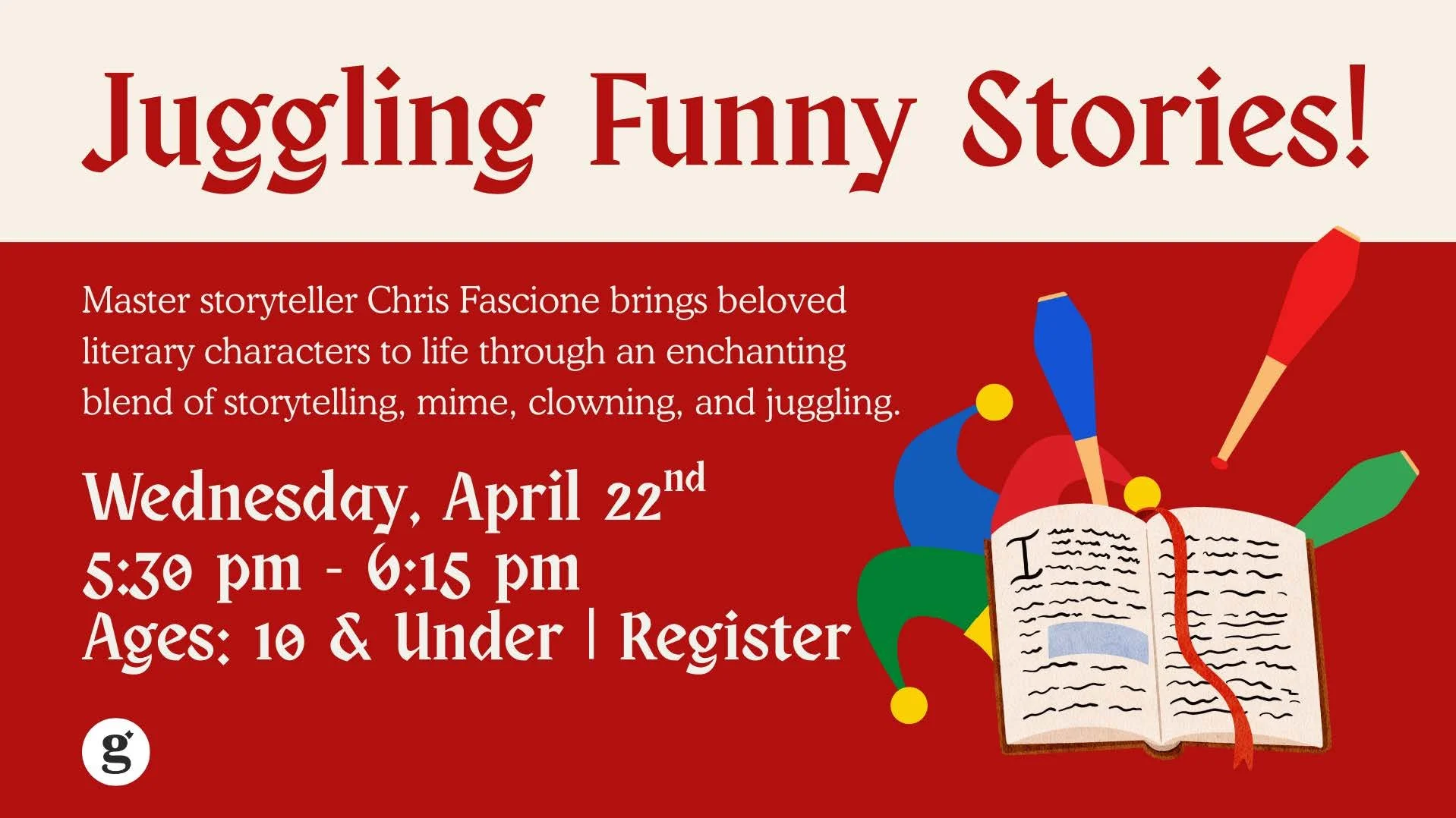 Master storyteller Chris Fascione brings beloved literary characters to life through an enchanting blend of storytelling, mime, clowning, and juggling. This captivating, interactive performance is one you won’t want to miss—definitely worth "book" marking on your calendar!