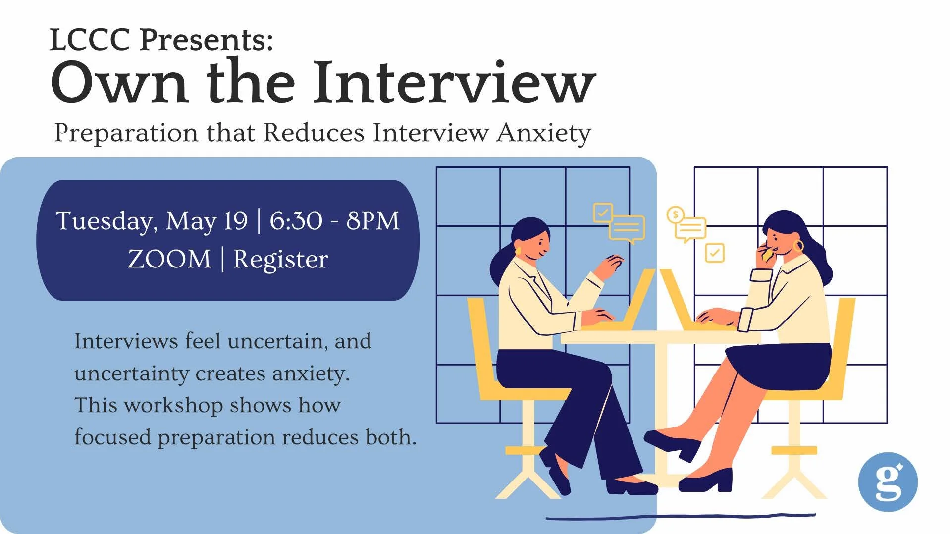 Walk in calm, clear, and in control. Interviews feel uncertain, and uncertainty creates anxiety. This workshop shows how focused preparation reduces both. You’ll build a Story Vault of accomplishments so your value is clear, script confident first lines using powerful, intentional language, and sketch a simple 90-Day Plan that signals readiness. ZOOM