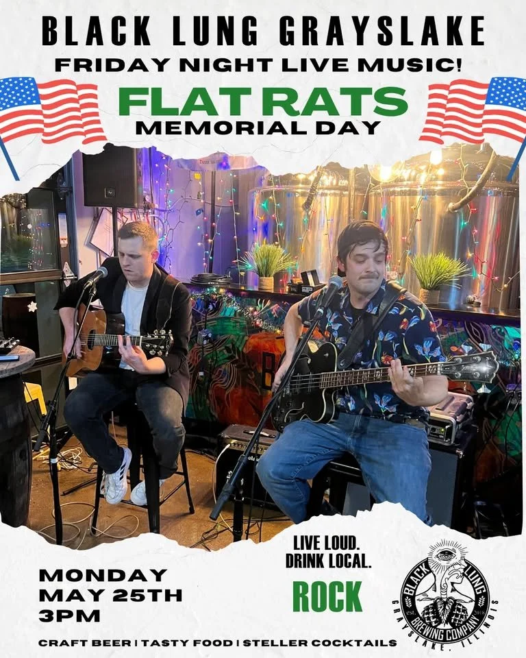 The Flat Rats are coming to Black Lung Brewing on Memorial Day! Enjoy your day off with some live music. This group’s sound features a mix of blues, jazz, and good ol’ fashioned rock ‘n’ roll.