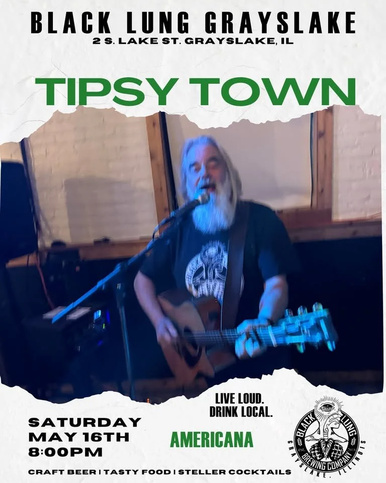 Back to All Events Live Music: Tipsy Town Saturday, May 16, 2026 8:00 PM 10:30 PM Black Lung Brewing Company 2 South Lake Street Grayslake, IL, 60030 United States (map) Google Calendar ICS Check out live music at Black Lung Brewing Company! This Saturday features Tipsy Town playing a variety of Americana tunes!