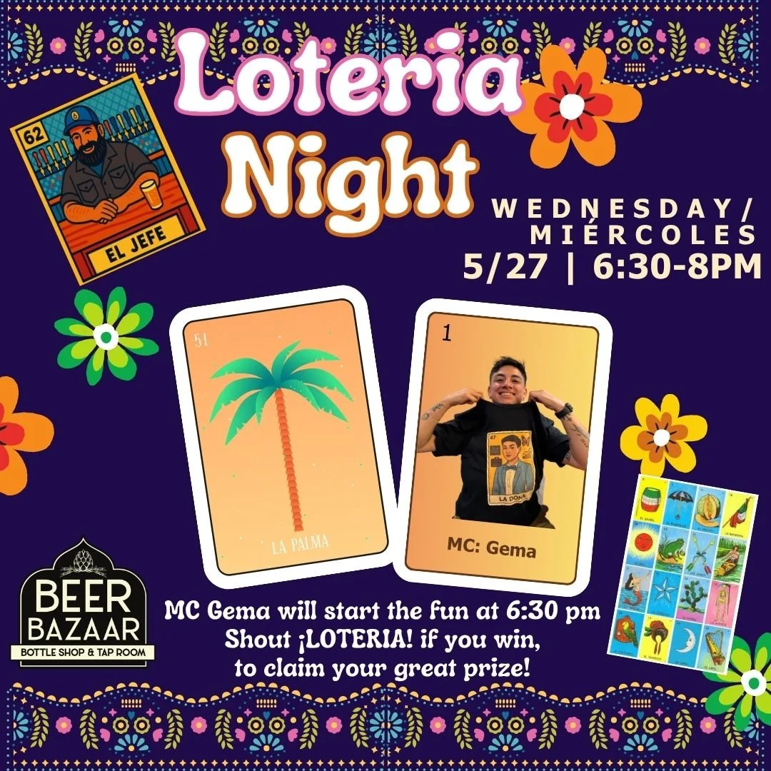 Get ready for a night of fun, laughter, and a chance to win prizes at Beer Bazaar's Loteria Bingo Night! Loteria is a traditional Mexican game of chance, similar to bingo, but played with a deck of illustrated cards instead of numbers. MC Gema will be your host, guiding you through each round with energy and excitement. It's completely free to play, and Beer Bazaar will have fantastic prizes for the lucky winners. Gather your friends, grab a drink, and try your luck at Loteria Bingo!