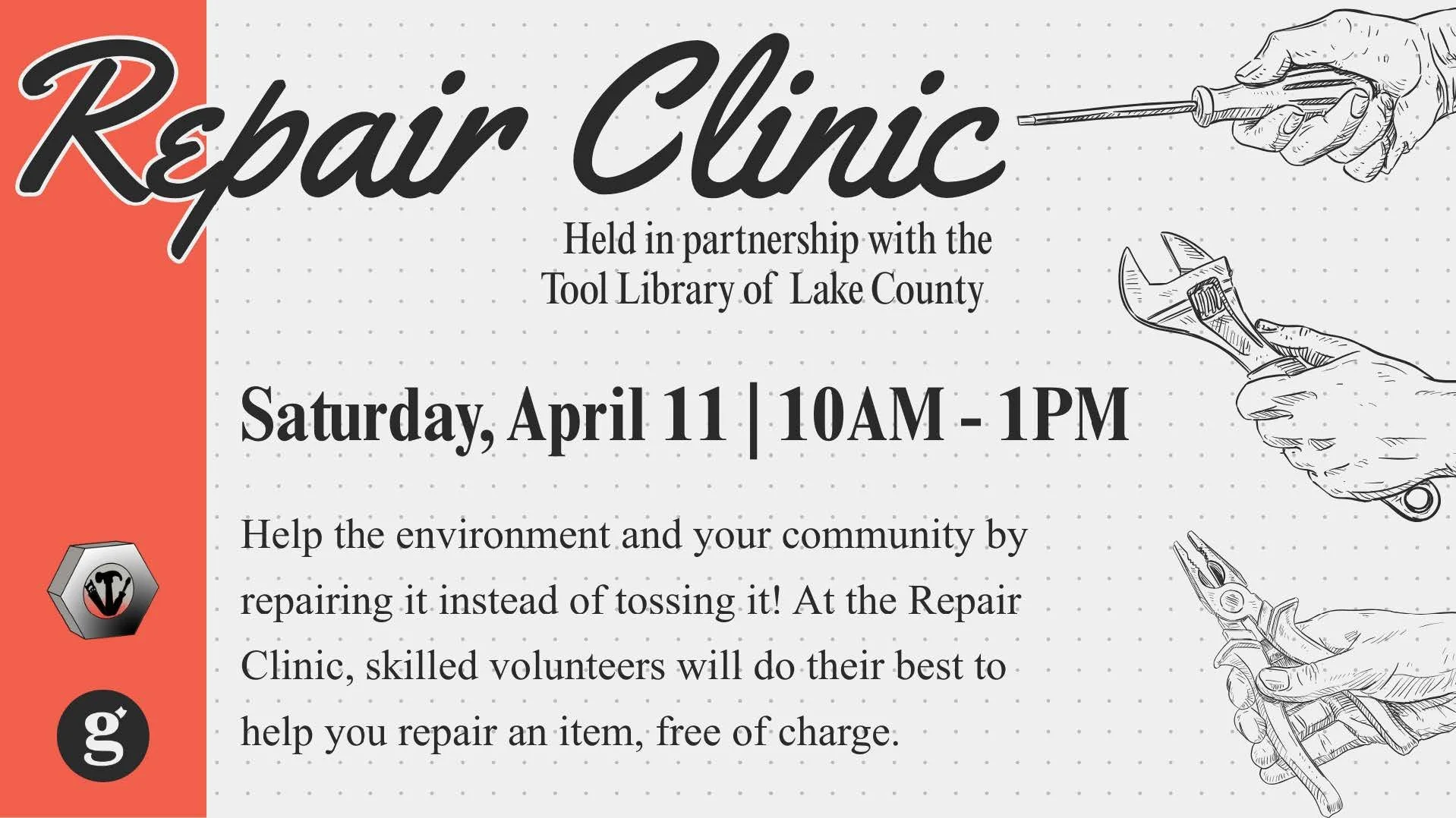 Help the environment and your community by repairing it instead of tossing it! At the Repair Clinic, skilled volunteers will do their best to help you repair an item, free of charge. Please note: We’ll do our best, but we cannot guarantee your item will be fixed.