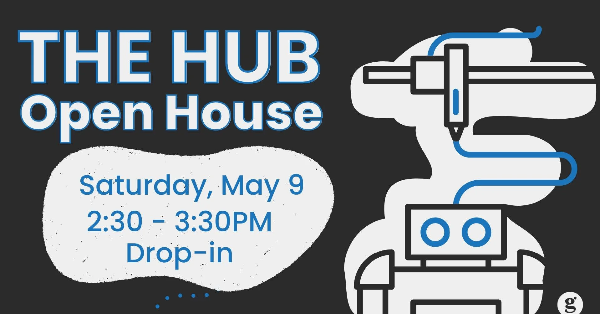 Join us for an open house at The Hub, the library's creative maker space! Whether you are a curious first-timer or an experienced creator, this is your chance to explore all the exciting tools and resources available to you. Please stop by at any time during the hour, and our friendly staff will be happy to give you a quick tour and answer any questions you have. Patrons ages 15 and under should be accompanied by an adult caregiver.
