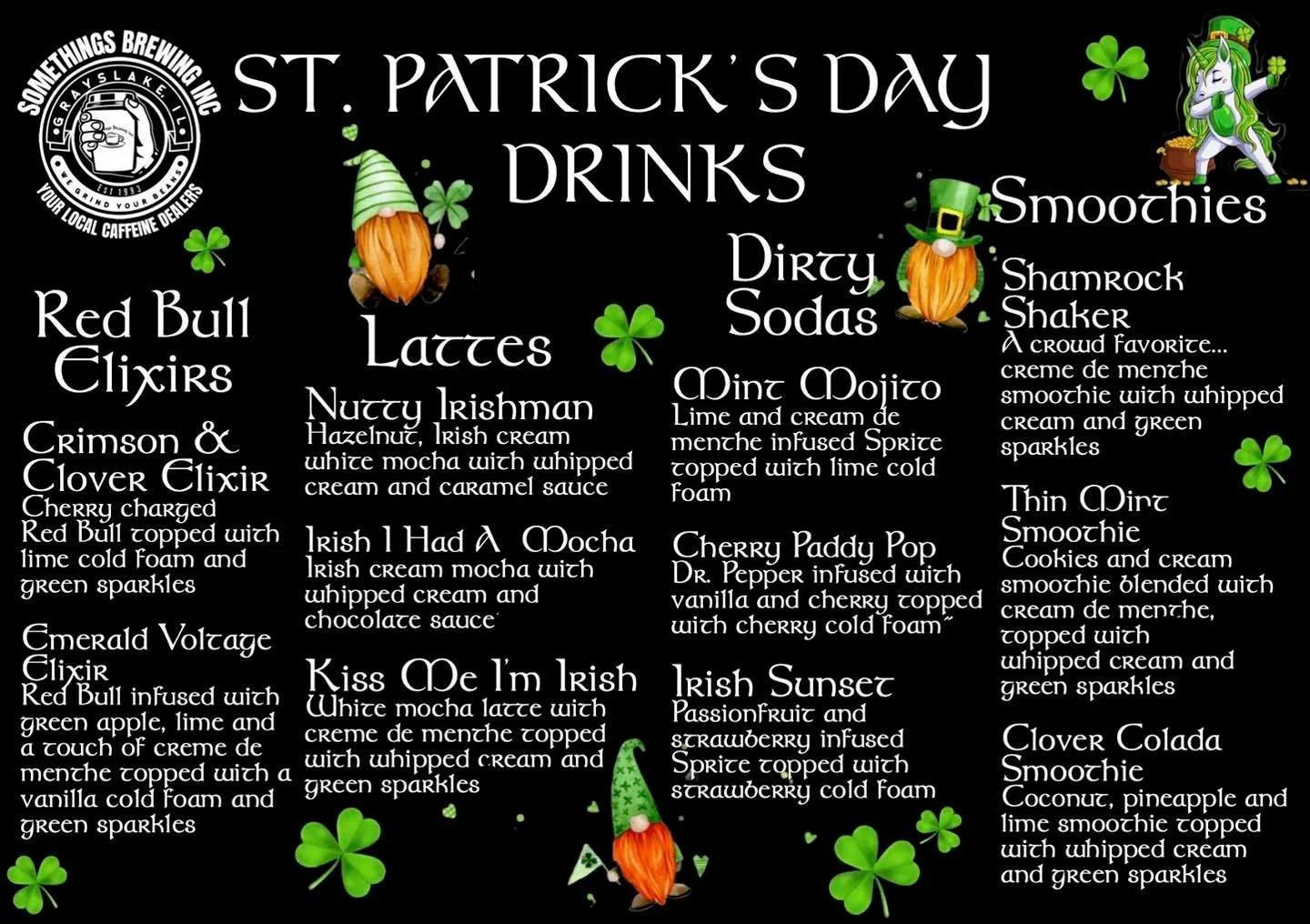 Aren’t we lucky this month!?! Check out Somethings Brewing’s menu full of delicious coffees, sweets, and food, as well as their all-new St. Patrick’s Day Drink menu available March 2026!